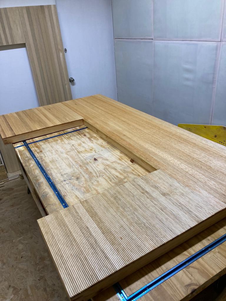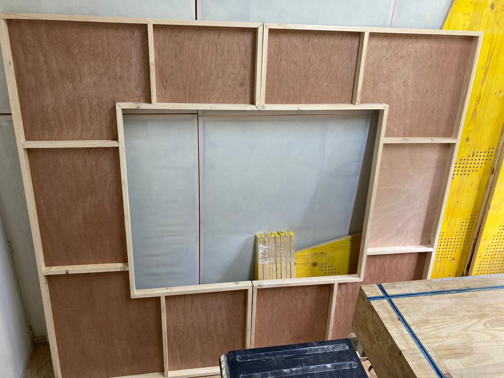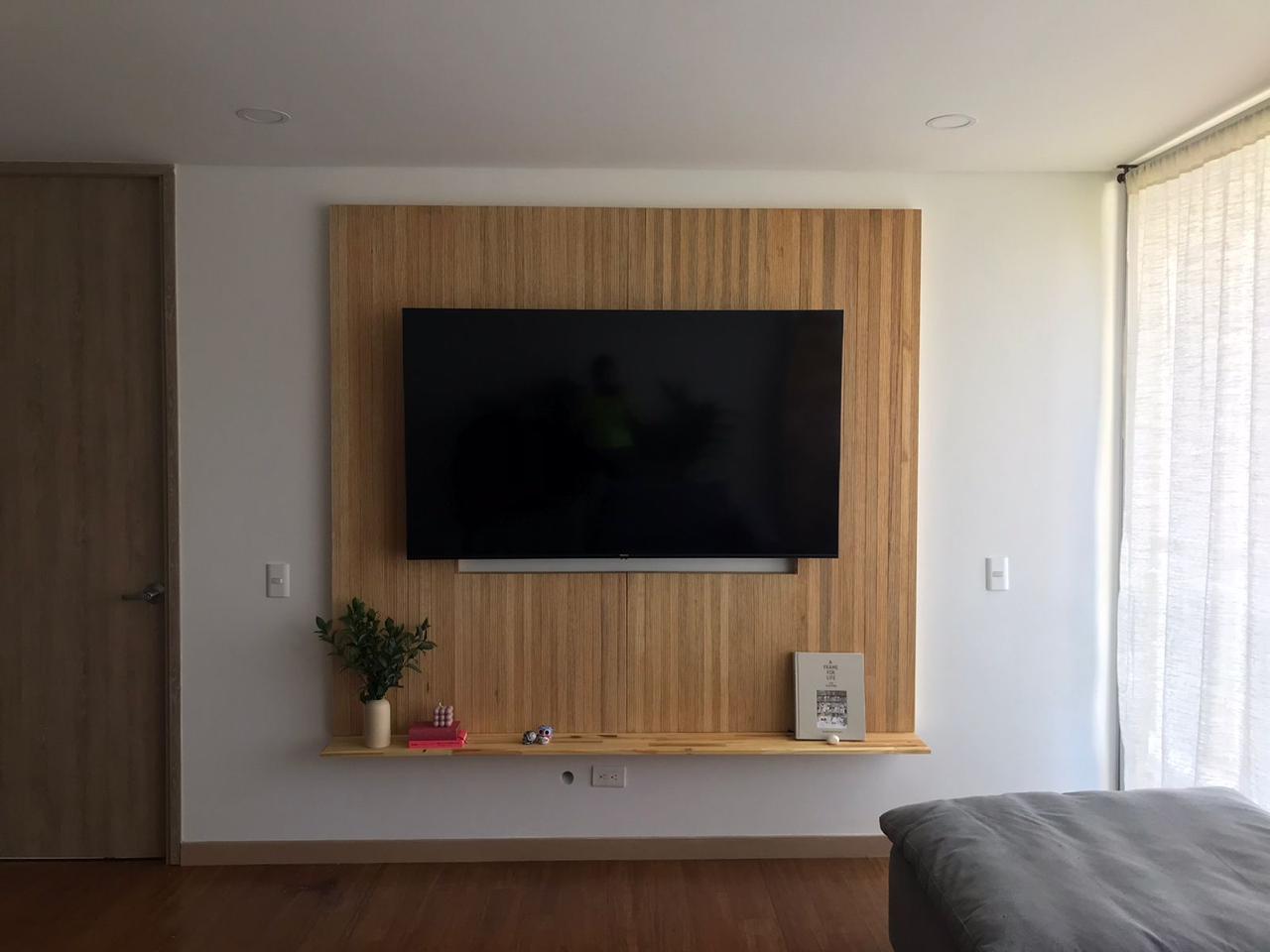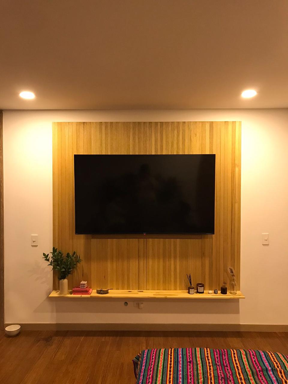 Este mueble utiliza las molduras en madera para crear una textura sobre toda la superficie y darle a esta consola un aspecto contemporáneo en la sala de nuestros clientes.